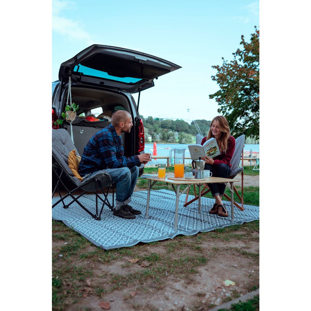 Висококачествен универсален килим за къмпинг и открито, идеален за поставяне под предверие на палатка, каравана, караванов навес, тревна площ или покрай тераси и павилиони. С две лица подходящ за
