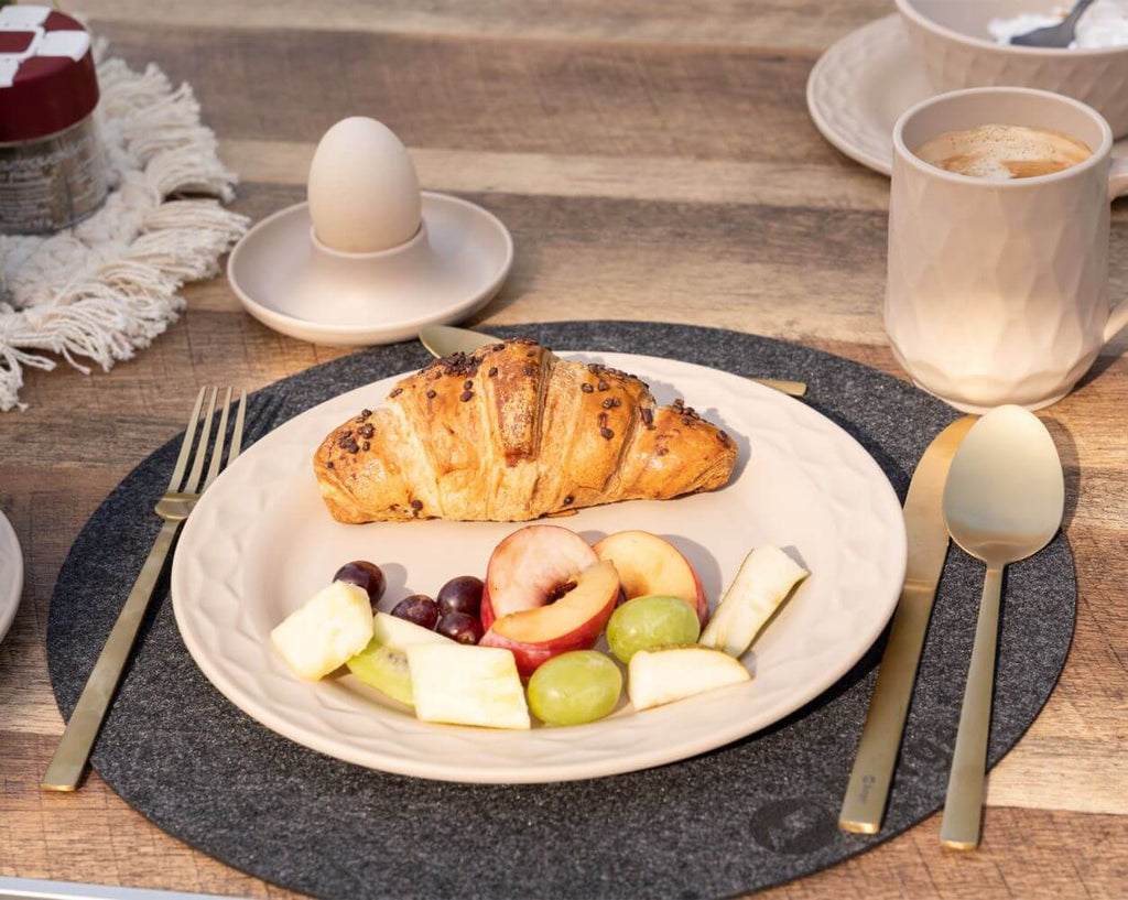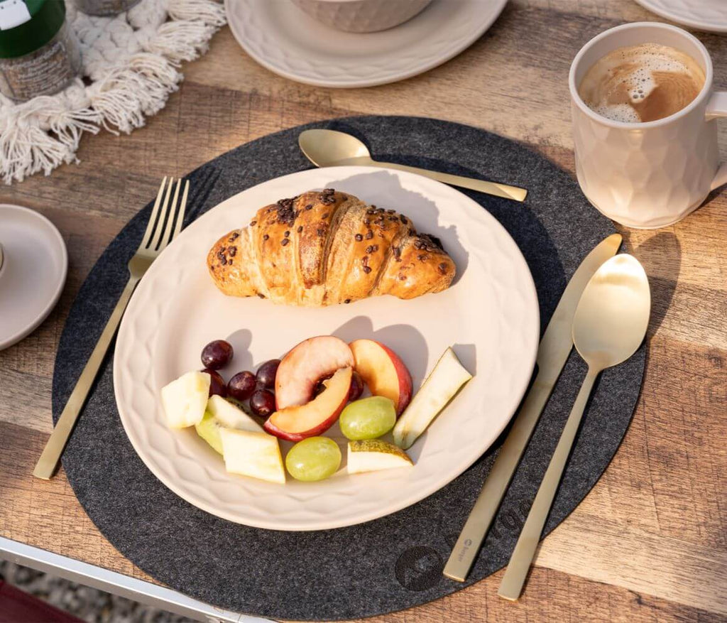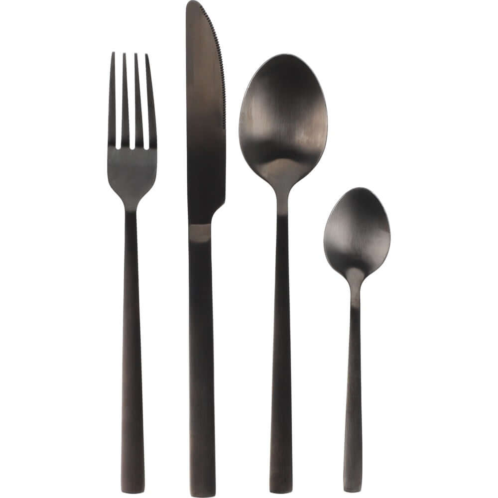 Praktisches Set für 4 Personen – beinhaltet alles, was zum Servieren benötigt wird: Messer, Gabeln, Esslöffel und Teelöffel.