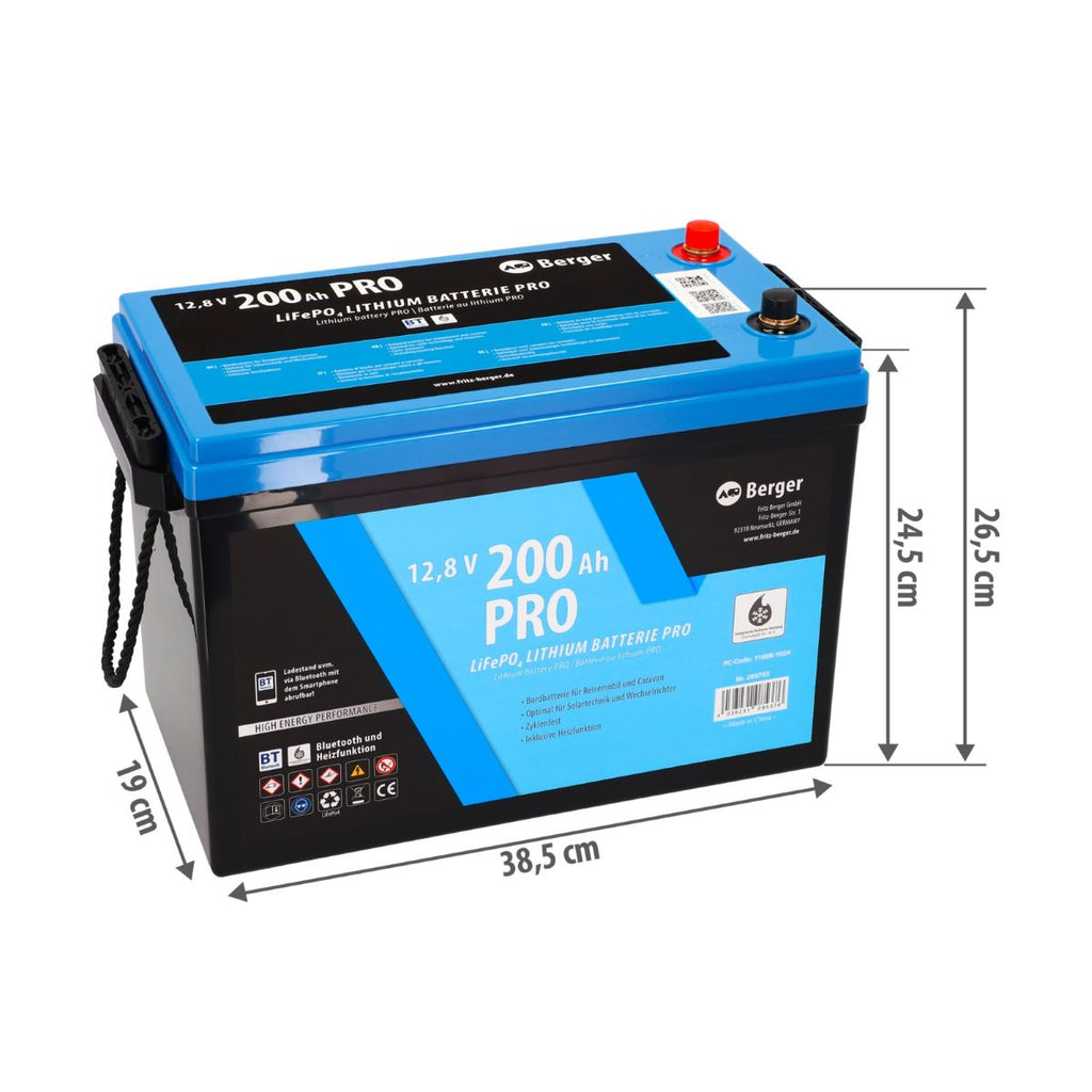 Berger LiFePO4 Pro 200 Ah е премиум литиева батерия за кемпери, каравани, лодки и автономни соларни системи с Bluetooth и вградено отопление . Осигурява висока мощност, дълъг живот и надеждна работа през всички сезони – включително при ниски температури.