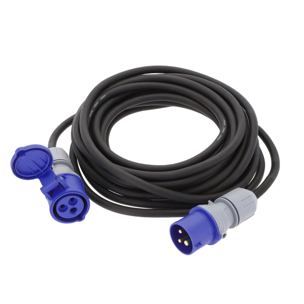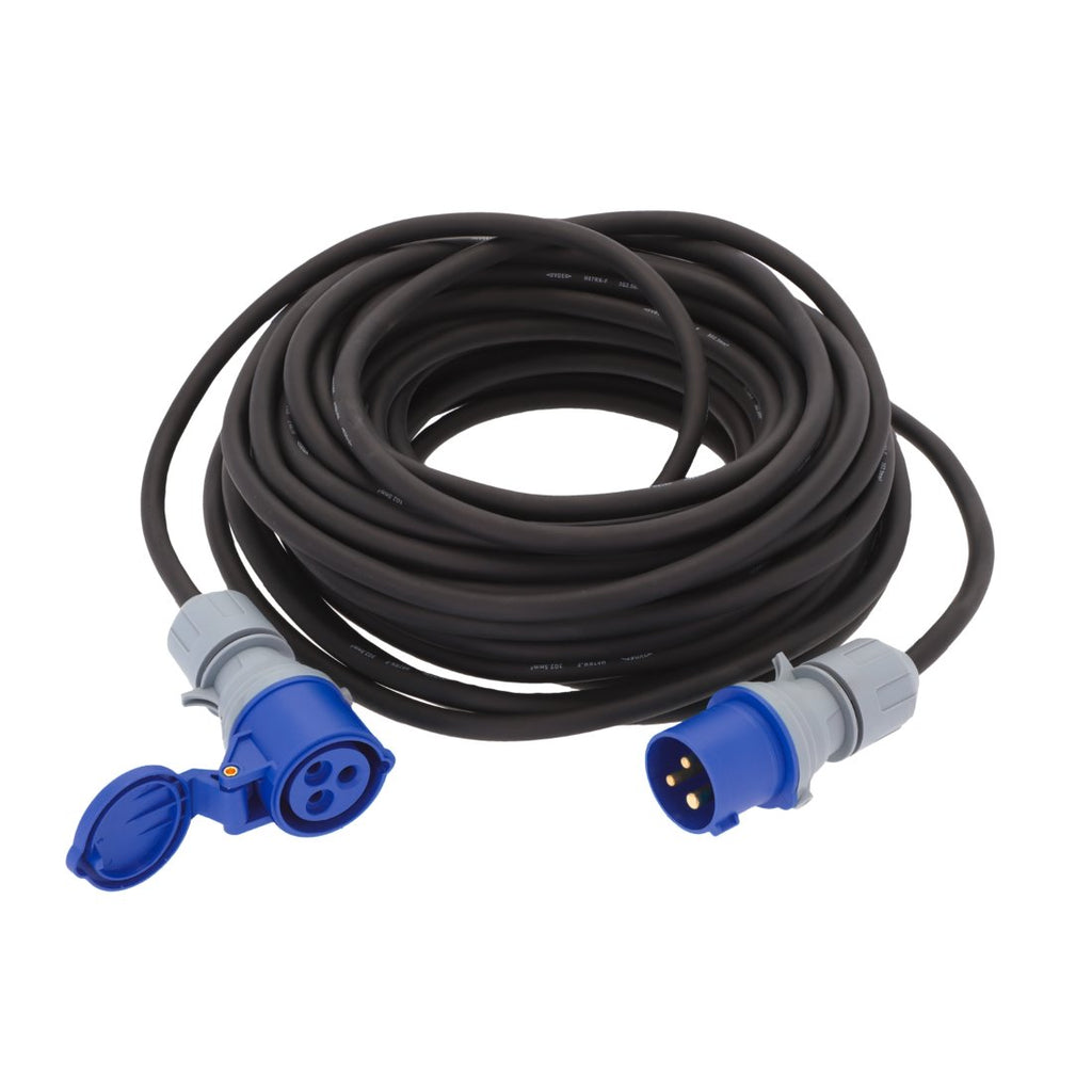 Extension cable with CEE Euro socket from the German brand Berger with CEE plug and CEE coupling, designed for 230 V/16 A power supply. Supports IP44 water protection for outdoor use, available in 4 lengths 1.5 m, 5 m, 10 m and 25 m, suitable for different distances between power supply and device. This is the standard for CEE 16A camping installations and allows safe operation up to 3600 W with a fully extended cable , making it suitable for campers, caravans and outdoor use.