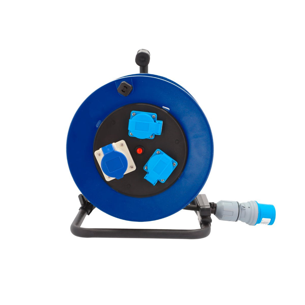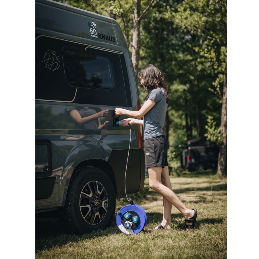 Berger Expert CEE cable reel 25 meters with a strong quality cable. A practical and reliable solution for powering a campsite, camper or caravan, combining robust performance, convenience and safe functionality when working outdoors and on plots. This cable reel has 25 meters of robust 2.5 mm² CEE cable , resistant to outdoor conditions, with protection class IP44 against dust and splashes. The device includes a European standard CEE plug and two Schuko sockets with covers for better protection when used in camping environments. It is designed for easy winding and unwinding, with an integrated cable guide and a stable metal frame, making it an ideal choice for connecting to external electrical points and extending power for camping and mobile applications.