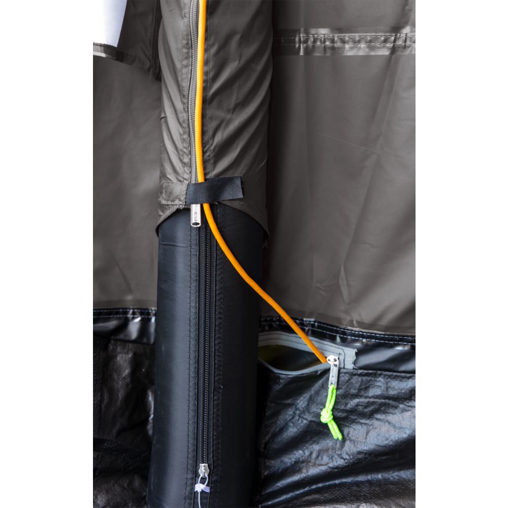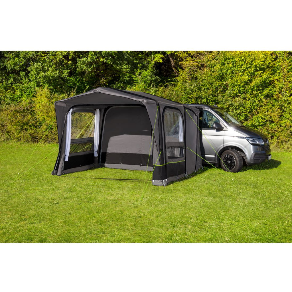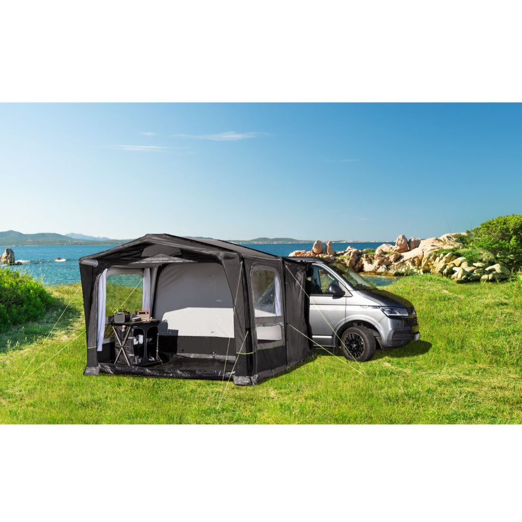 Тази палатка-предверие служи като разширено място за отдих и готвене, защитено от слънце и дъжд, което се монтира настрани на вашия автомобил със дуална система за фиксиране. Благодарение на надуваемите въздушни тръби и single-point air system, монтажът е бърз и лесен – без метални пръти.