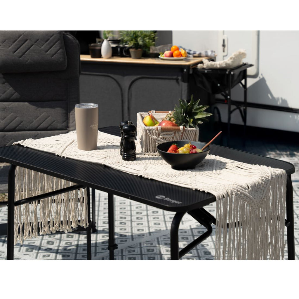 The Berger Folding Table Tornio Carbonoptik is a reliable, lightweight and multifunctional camping table that makes outdoor living easier and adds style to any camping area.