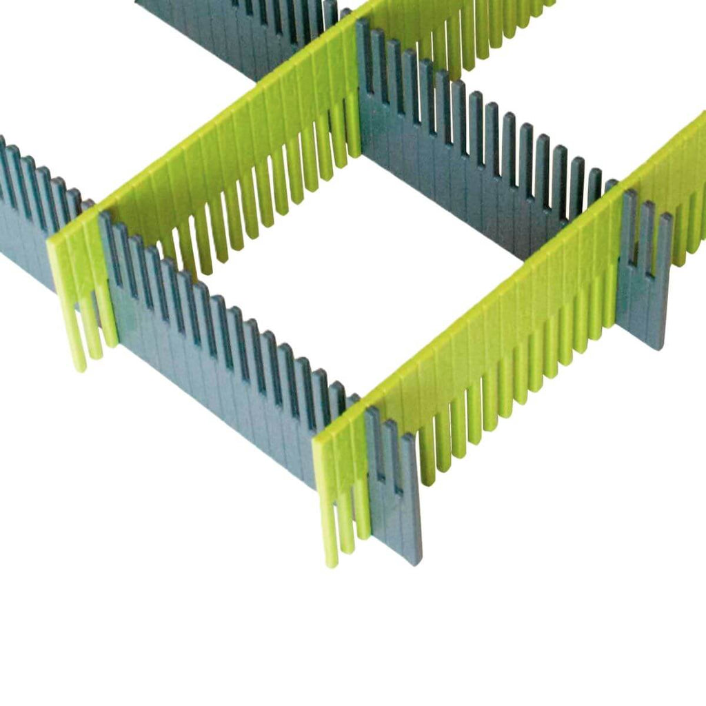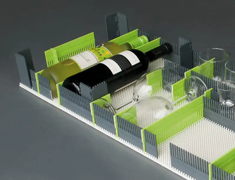 Перфорирана „нопена“ основа и кубчета с регулируеми разделители: Могат да се изрежат според нужната големина и лесно да се поставят, което позволява персонализирана подредба.